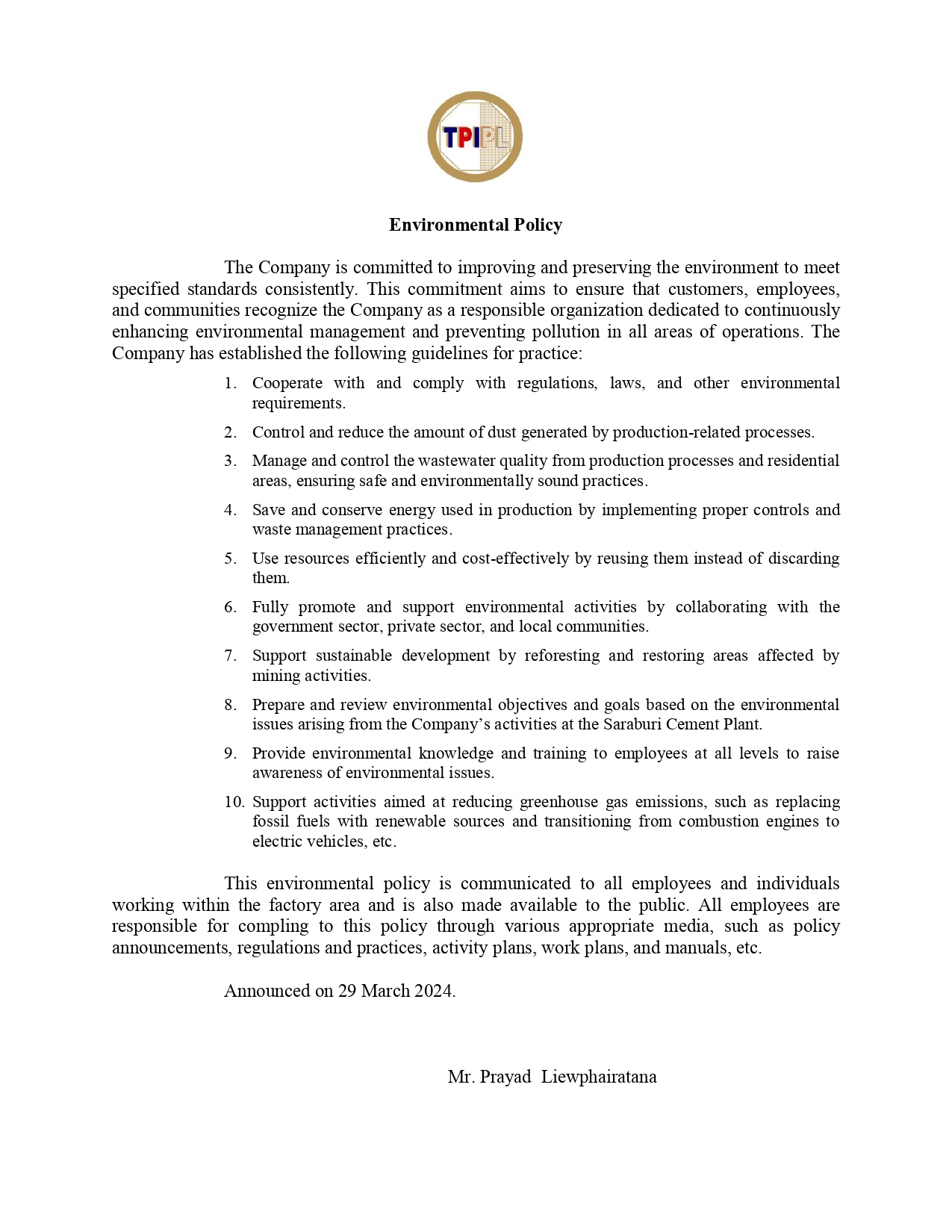 TPI Polene and Environment