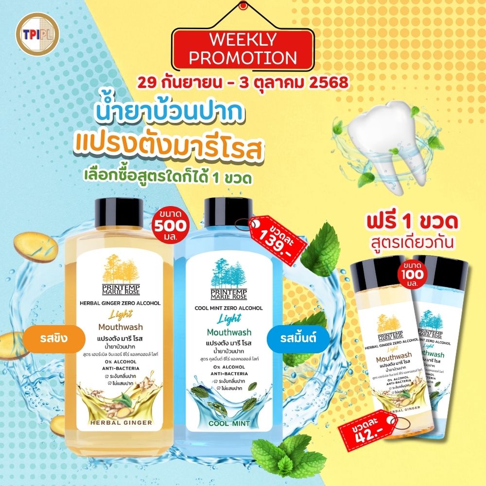 📣 📢🔥 Weekly Promotion น้ำยาบ้วนปาก แปรงตังมารีโรส TPI Printemp Marie Rose (ซื้อสูตรใดก็ได้ 1 ขวด เเถมฟรี 1 ขวด!!!)