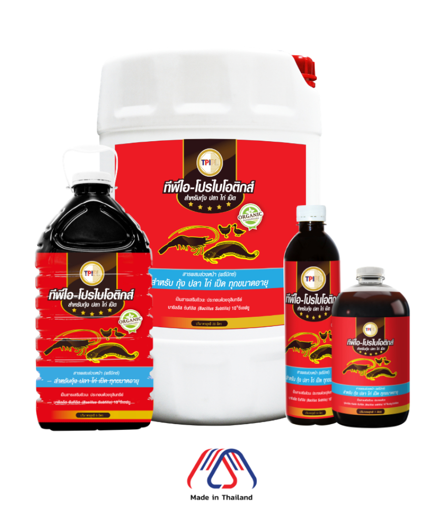 ทีพีไอ โปรไบโอติกส์ เป็นผลิตภัณฑ์เสริมอาหารจากจุลินทรีย์ที่มีประโยชน์ และปลอดภัยสำหรับสัตว์ ที่ผลิตจากวัตถุดิบอินทรีย์จากธรรมชาติ จึงสามารถนำมาใช้กับสัตว์ปีก สัตว์บก และสัตว์น้ำทุกชนิด ช่วยในกระบวนการย่อยอาหารและดูดซึมอาหารของสัตว์ และเพิ่มภูมิคุ้มกันให้สัตว์มีสุขภาพดี เจริญเติบโตดี น้ำหนักดี ลดการใช้ยาปฏิชีวนะ