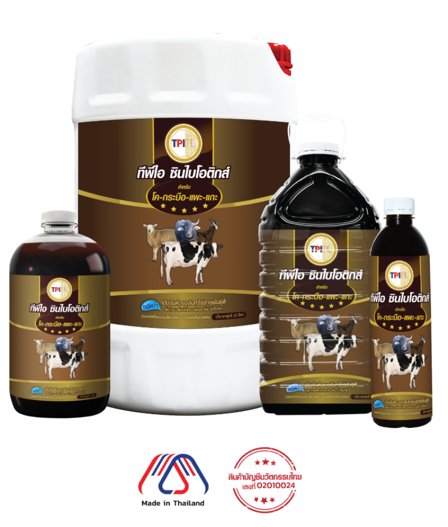 - ใช้ทีพีไอ ซินไบโอติกส์ คลุกกับ อาหารสัตว์ อัตรา 1-2%