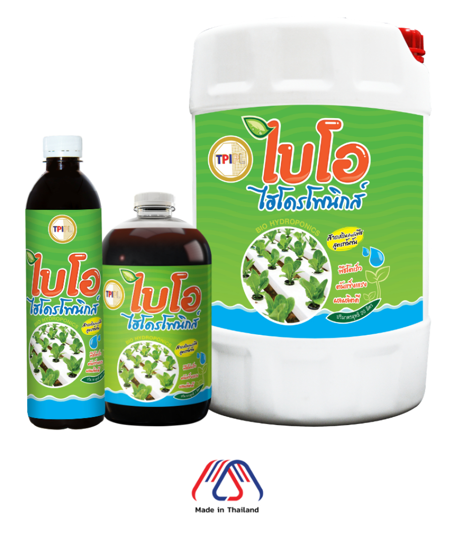 ผลิตภัณฑ์สารเสริมสำหรับพืชสูตรเข้มข้น BIO-HYDROPONICS ประกอบด้วยธาตุอาหารที่จำเป็นต่อพืชในรูปแบบที่พืชดูดซึมได้ทันที โดยผสมในน้ำเพื่อเป็นสารอาหารพืชและใช้ปรับรักษาค่าการนำไฟฟ้า (EC) และค่าความเป็นกรดด่าง (pH) ใช้ได้กับการปลูกพืชทุกชนิดทุกระบบ ทั้ง NFT (Nutrient Film Technique) และ DRFT (Dynamic Root Floating Technique)