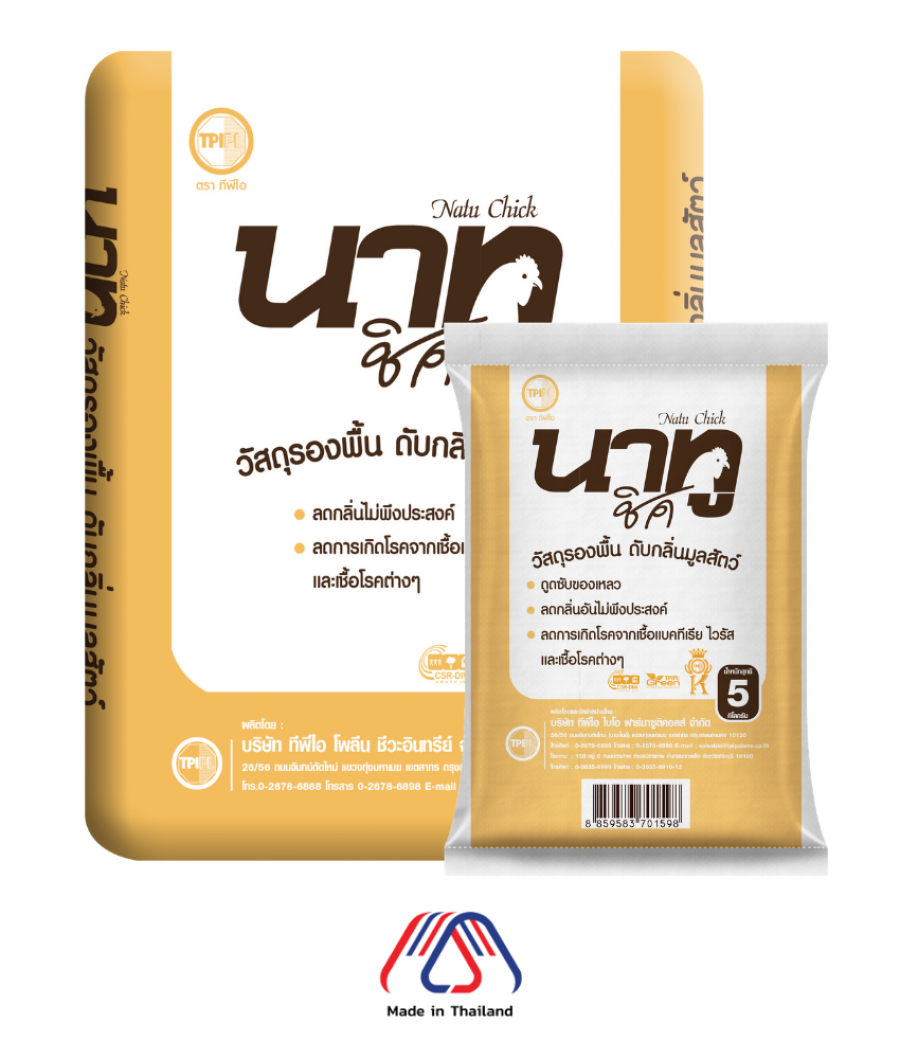อัตราการใช้งาน : ใช้วัสดุรองพื้นนาทู ชิค หว่านกระจายปูพื้น อัตรา 1 กิโลกรัม ต่อพื้นที่ 1 ตารางเมตร เพื่อป้องกันการเกิดกลิ่น อันไม่พึงประสงค์ต่างๆ ที่เกิดจากมูลสัตว์และของเสียต่างๆ และรักษาสภาพแวดล้อมภายในฟาร์ม