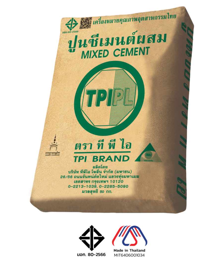 ปูนซีเมนต์ผสมตราทีพีไอ (สีเขียว) เป็นปูนซีเมนต์ที่ได้จากการผสมวัสดุเฉื่อย เช่น ทราย หรือหินปูน และอื่นๆ กับปูนซีเมนต์ปอร์ตแลนด์ประเภทหนึ่ง ผลิตขึ้นโดยให้คุณภาพของปูนซีเมนต์มีคุณสมบัติถูกต้องเป็นไปตามเกณฑ์ ที่กำหนดในมาตรฐานอุตสาหกรรมปูนซีเมนต์ผสม มอก. 80-2550