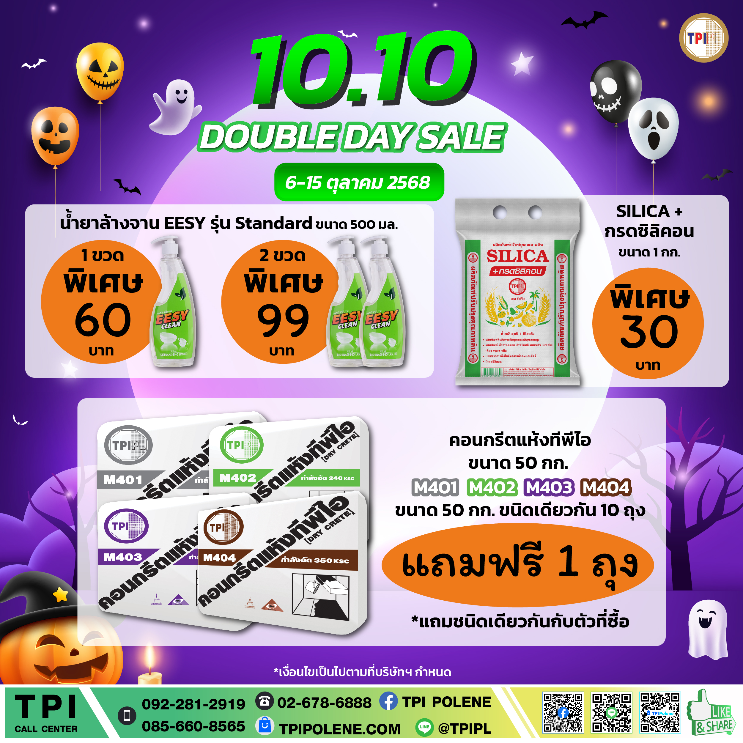 รายการส่งเสริมการขายและกิจกรรมการตลาด 📣 📢🔥 Double day Sales 10.10 โปรเด็ด โดนใจ 👉🏻 Weekly Promotion 6-15 ตุลาคม 2568 👈🏻 สั่งซื้อผ่านทางออนไลน์ คลิก >> https://www.tpipolene.com/promotion